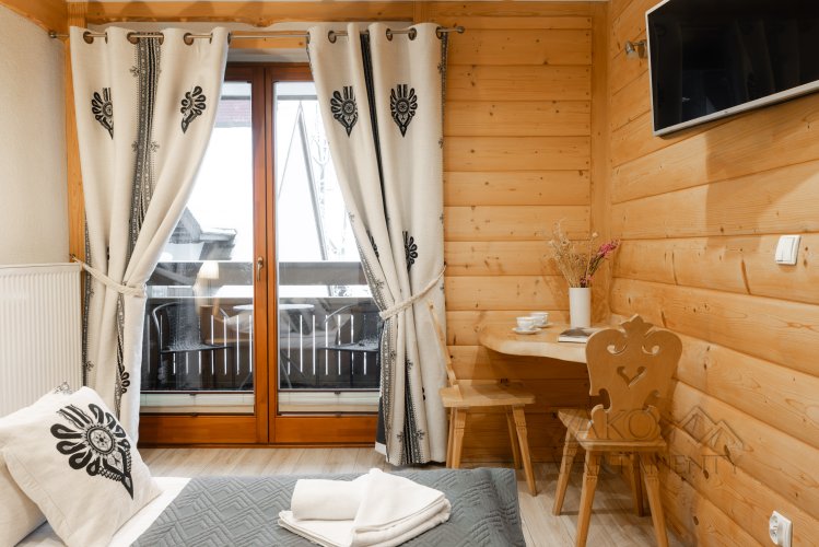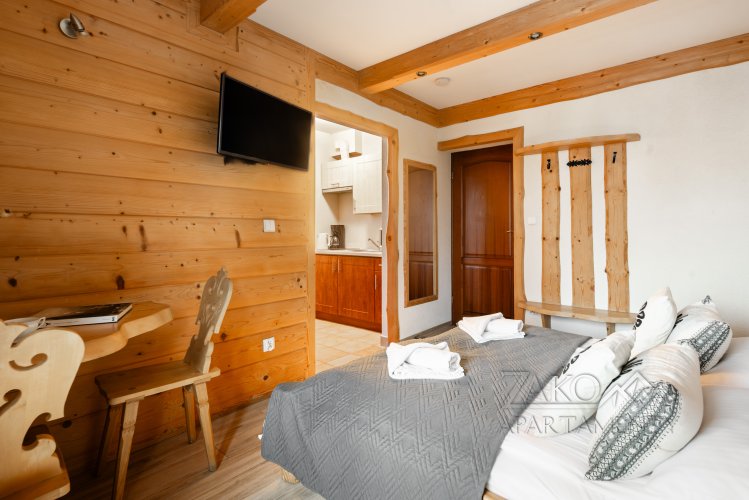 APART-Studio VERA 6: 2 osobowe studio o wielkości 22 m2 z wydzielonym aneksem kuchennym, łazienką oraz balkonem i widokiem na Giewont.