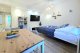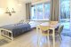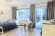 Łóżko małżeńskie 160cm/200cm, rozkładana sofa 140/200cm, stół, 4x krzesło, TV-lcd, szafa, wyjście na ogród.