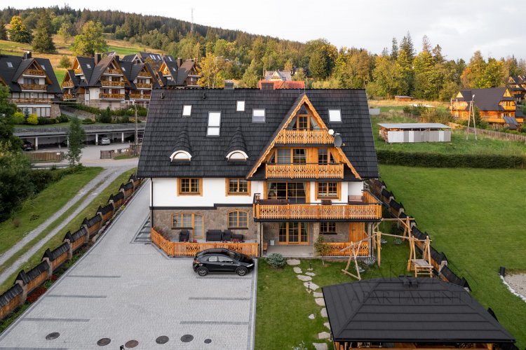 Apartament FRANKA znajduje się w kompleksie nowych luksusowych apartamentów zlokalizowanych na zboczu Kierpcówki, z którego roztacza się przepiękny widok na panoramę Tatr. Bezpośrednie sąsiedztwo łąki i lasu gwarantuje wrażenia wysoce estetyczne i poczucie bliskości z naturą. Bezposrednio z obiektu prowadzi piekny widokowo szlak pieszy i ROWEROWY na GUBAŁÓWKĘ.