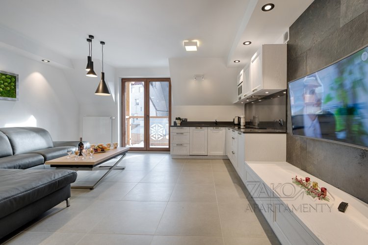 Apartament, oferuje nocleg dla całej rodziny, lub dwóch zaprzyjaźnionych par. Można spędzać tu wspólnie wspaniałe wakacje, ferie czy weekendowy wypad a jednocześnie znaleźć miejsce na chwilę odpoczynku w samotności. Jest to apartament urządzony luksusowo, jasne i stylowe meble dają poczucie komfortu i elegancji w jednym. Atutem są dwie odzdzielne sypialnie i balkon z WIDOKIEM na GIEWONT.