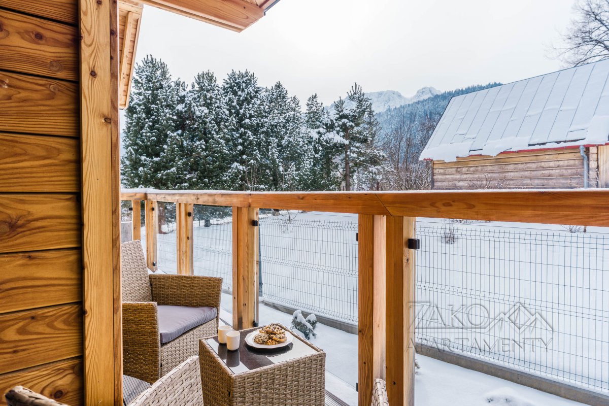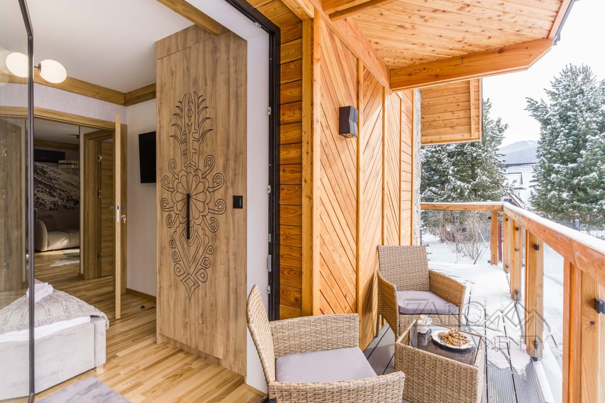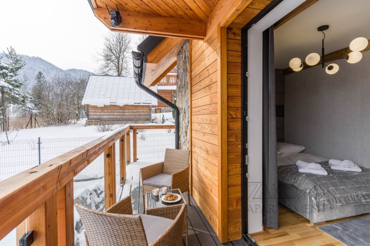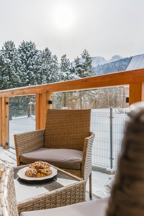 Z balkonu rozpościera się widok na szczyt Giewontu, który każdego dnia przypomina o bliskości Tatr i wyjątkowym charakterze tego miejsca.