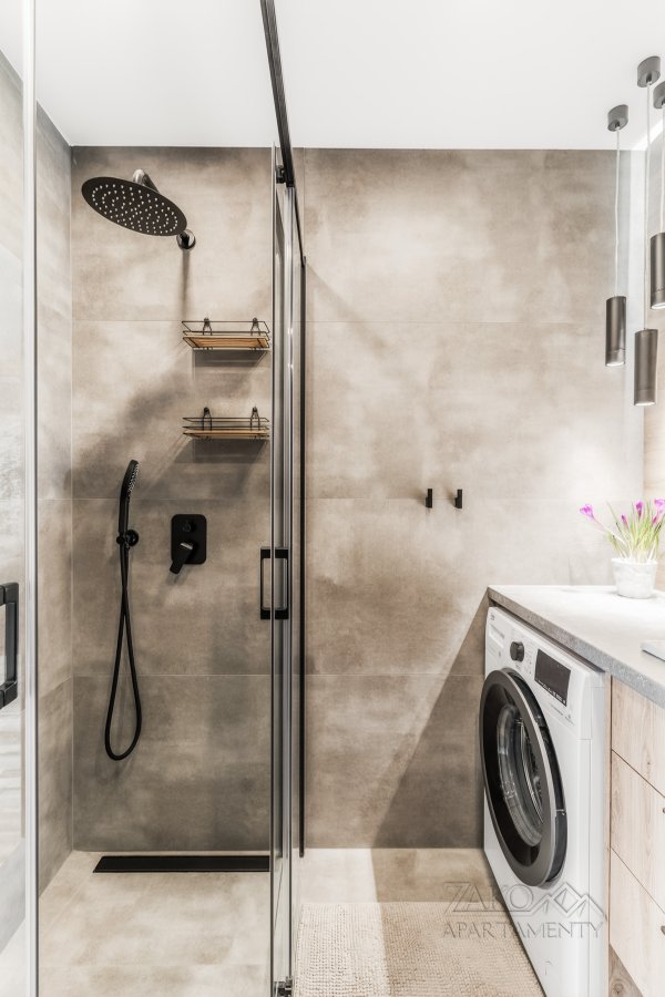 Duża kabina prysznicowa, umywalka, wc, PRALKA, ręczniki, suszarka do włosów.