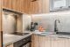 Płyta elektryczna 2 x palnik, mikrofala z funkcją grilla, ekspres do kawy (kolbowy), zmywarka, czajnik elektryczny, lodówko - zamrażarka, garnki, naczynia, sztućce, szkło.