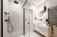 kabina prysznicowa, wc, umywalka, suszarka do włosów, ręczniki.