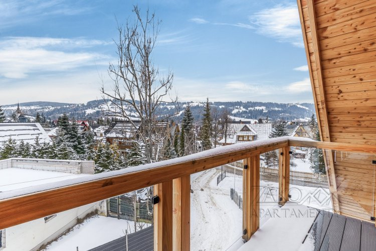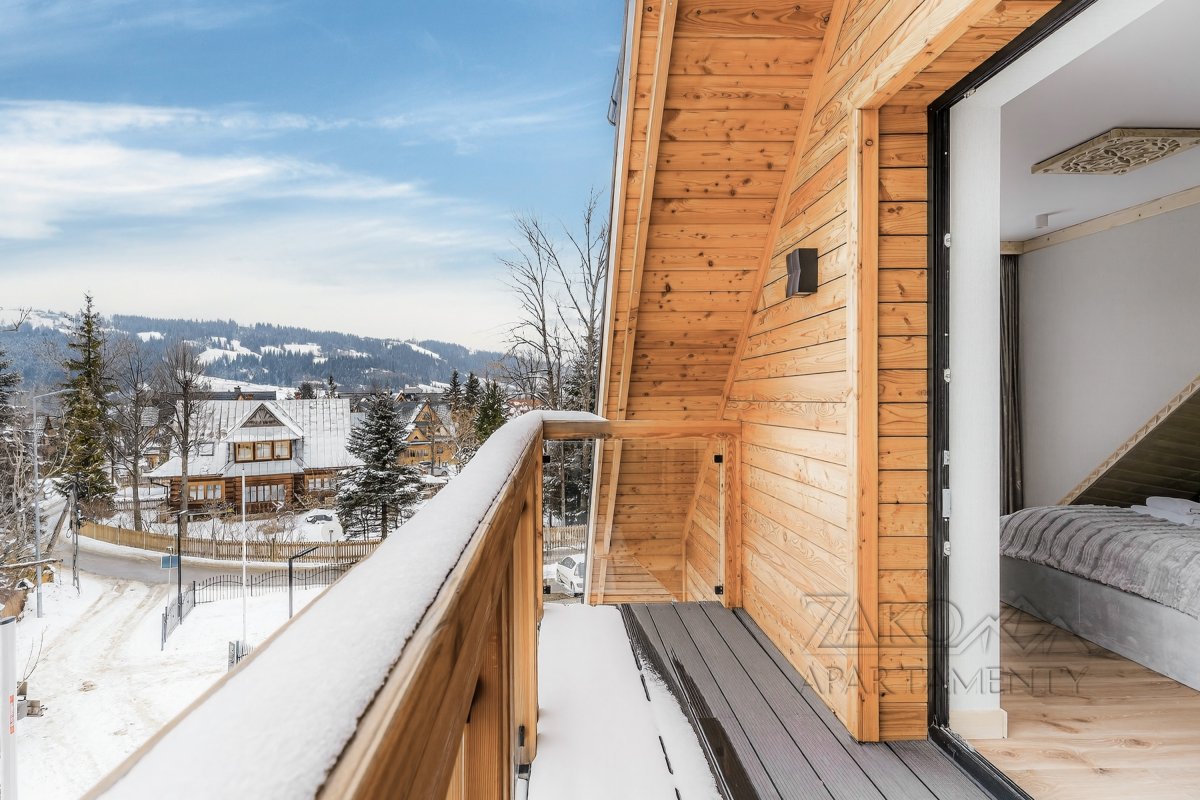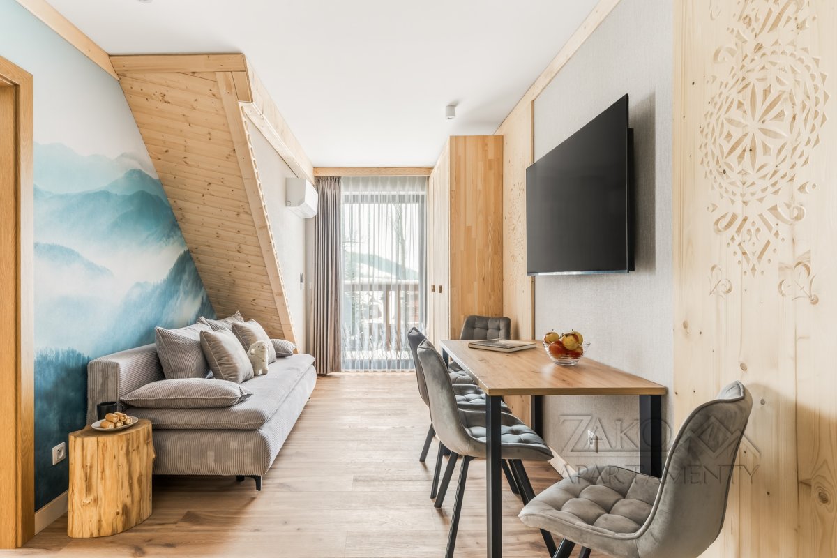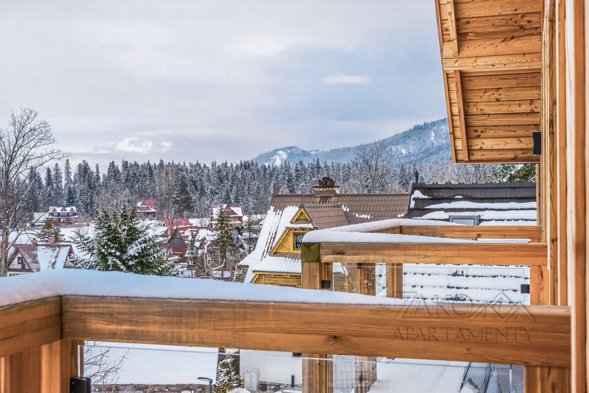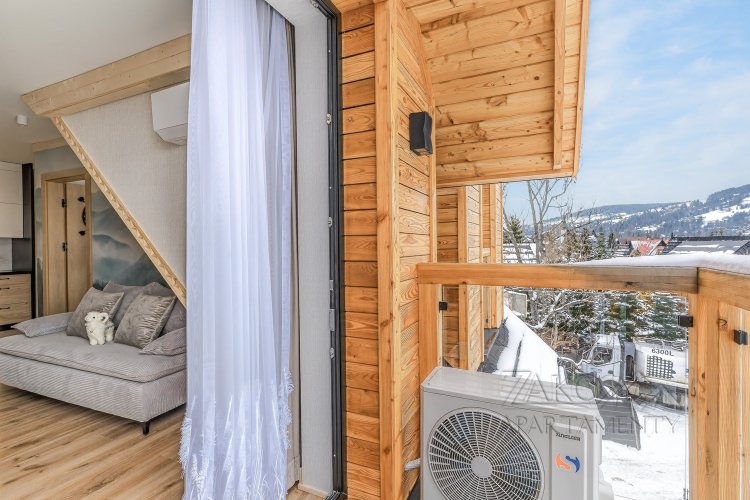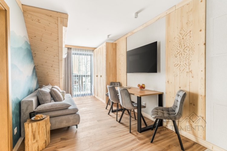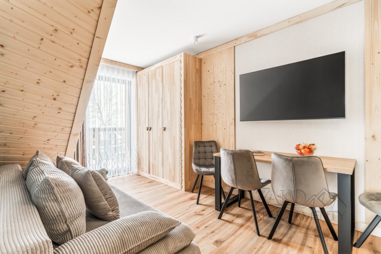 Salon z klimatyzacją, 1 x sypialnia, aneks kuchenny, łazienka, balkon z widokiem na Butorowy Wierch, 2 x balkon francuski.