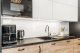 Płyta elektryczna 2 x palnik, mikrofala z funkcją grilla, ekspres do kawy (kawa ziarnista), zmywarka, czajnik elektryczny, lodówko - zamrażarka, garnki, naczynia, sztućce, szkło.