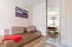 1 x łoże małżeńskie (140cm/200cm), 1 x dwuosobowa, rozkładana sofa (140cm/200cm), toaletka, szafa, tv-LED, pościel